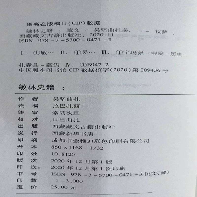 敏林史籍-藏田藏文图书-宁玛派-寺院-历史-扎囊县-藏语