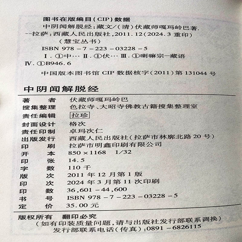 中阴闻解脱经-藏田藏文图书-喇嘛宗-藏语