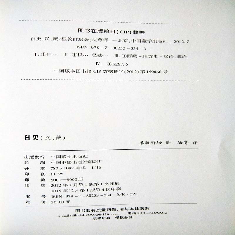 (藏田图书)白史:汉、藏-西藏-地方史-汉语-藏语