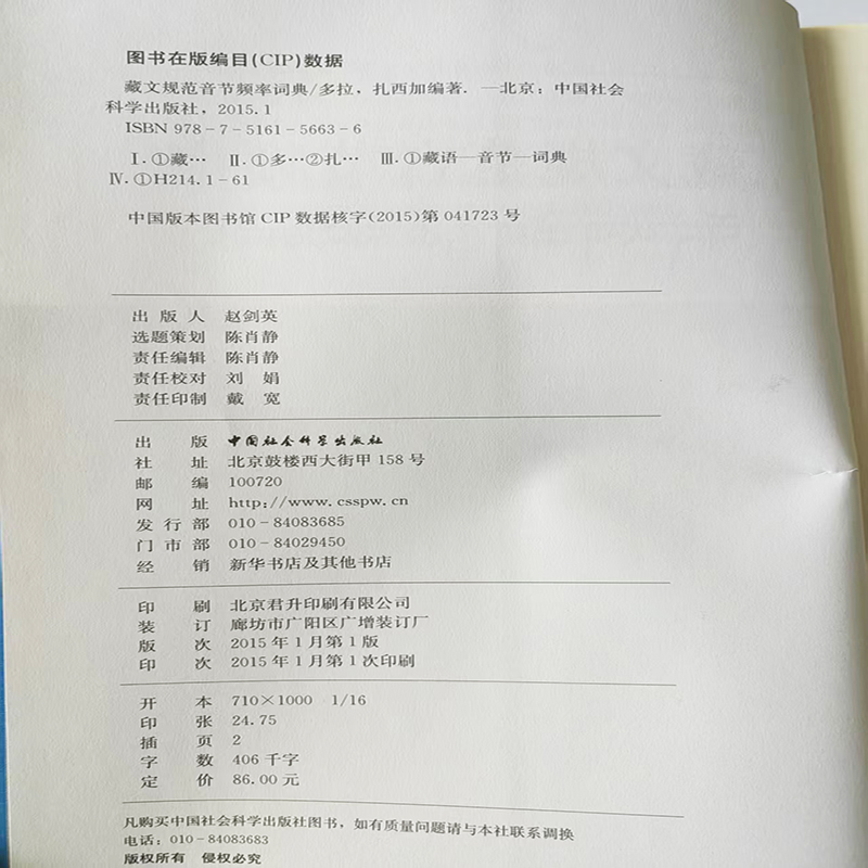 (藏田图书)藏文规范音节频率词典